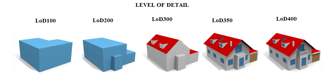 Dokładność odwzorowania modelu BIM określa się za pomocą poziomów definicji LOD (ang. Level of Detail). Jest to klasyfikacja poziomów szczegółowości dot. danych geometrycznych oraz danych nie geometrycznych, opisowych. W wolnym tłumaczeniu LOD to poziom kompletności , do którego element został dopracowany. Poziom szczegółowości 100 dostarcza najmniej szczegółów i tworzy najbardziej zgeneralizowany model BIM, natomiast podczas modelowania na poziomie szczegółowości 400 tworzony jest najbardziej szczegółowy model zawierający bazy danych z informacjami nie geometrycznymi dot. każdego elementu modelu. Poniżej przedstawiono charakterystyki kolejnych poziomów szczegółowości BIM.